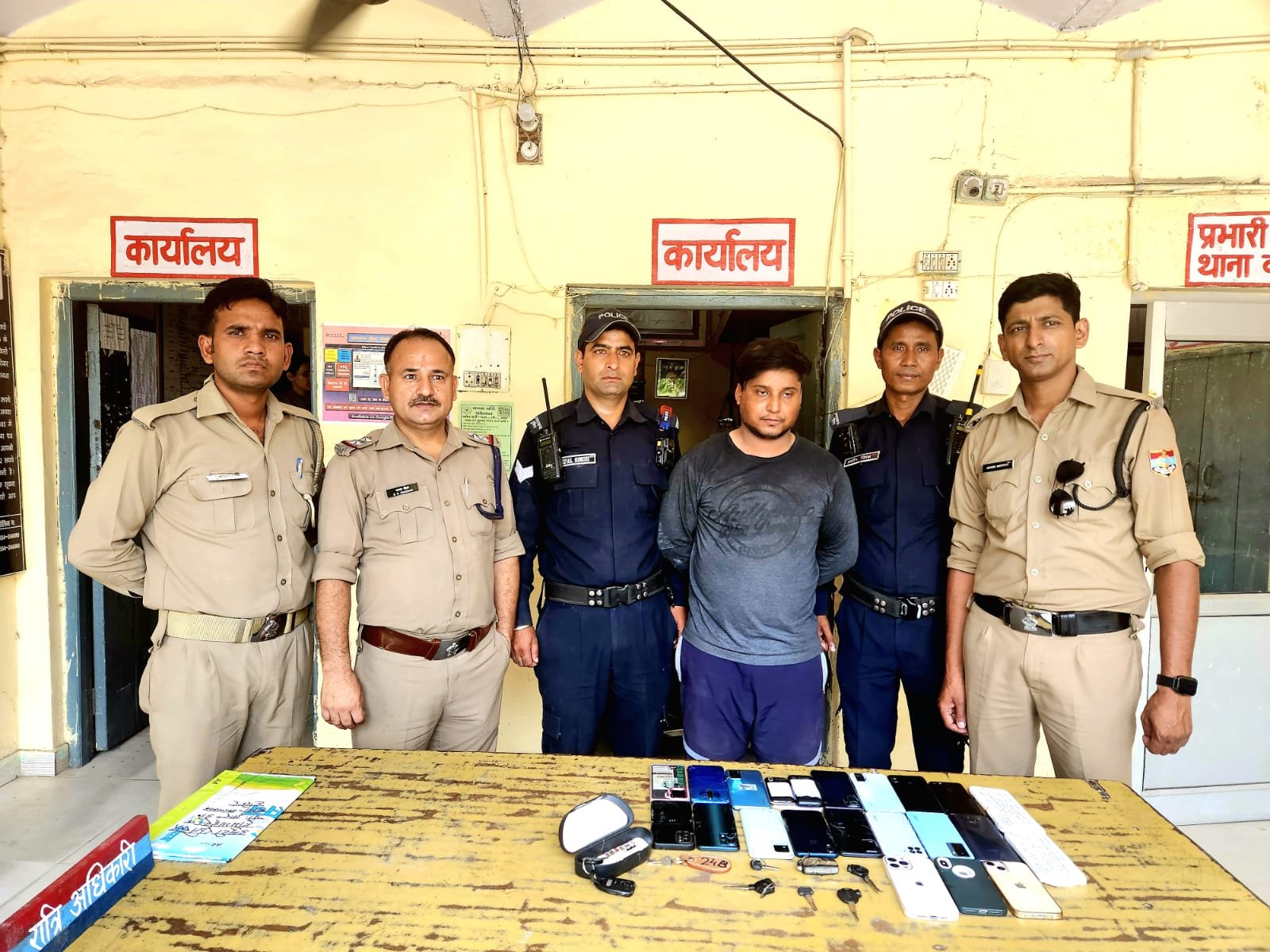 कुल 22 चोरी के महंगे मोबाइलों , 06 स्कूटी की चाबियां, 16 सिम कार्ड के साथ एक चोर दबोचा , करीब 8 से 10 लाख रुपए की कीमत के एप्पल व अन्य कंपनियों के महंगे मोबाइल बरामद