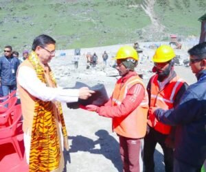 उन्होंने प्रशासनिक अधिकारियों को निर्देशित करते हुए कहा कि हमारे श्रमिक विभिन्न विषम परिस्थितियों में यह कार्य रहे हैं, सभी श्रमिकों का विशेष ख्याल रखा जाए उन्हें किसी भी परेशानी का सामना ना करना पड़े। इस दौरान मुख्यमंत्री श्री पुष्कर धामी का सभी तीर्थ पुरोहितों ने स्वागत किया।