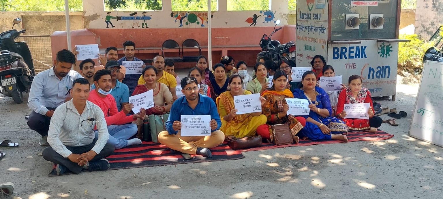 हरिद्वार। राजकीय स्वास्थ्य मिशन कर्मचारियों ने सीएचसी में विभिन्न मांगों को लेकर एक दिवसीय कार्य बहिष्कार और धरना प्रदर्शन किया। राष्ट्रीय स्वास्थ्य मिशन के कर्मचारी पिछले तीन दिवस से सभी कर्मचारी काली पट्टी बांधकर कार्य कर रहे है।कर्मचारियों ने बताया कि उनको भी बीमा पॉलिसी का लाभ मिले, भारत सरकार द्वारा वर्ष 2018 से समस्त राष्ट्रीय स्वास्थ्य मिशन के कर्मचारियों का सर्विस रेशनलाइजेशन होना था जो वर्तमान समय तक नही हो पाया है। जिसका बजट भी समय-समय पर प्रदेश सरकार को मिल रहा है। अध्यक्ष डॉ.शैलेंद्र थपलियाल का कहना है कि उनको समान कार्य के लिए समान वेतन मान दिया जाए, हरियाणा की तर्ज पर ग्रेड-पे वर्तमान लागू किया जाये। 65 वर्ष की आयु तक समस्त कर्मचारियों को सर्विस नियमावली मे रखा जाये, जिन कर्मचारियों को वर्तमान समय मे किसी कारण वश स्वास्थ्य समिति या से बहार (हटा) दिया गया। उन्हे तुरन्त उनकी सेवा बहाल की जाये। उपाध्यक्ष सुनील दत्त ने कहा कि सामुदायिक स्वास्थ्य अधिकारीयों के 15 माह से लंबित पीबीआई जो की मूल वेतन का 7.5% है। उसका अतिशीघ्र भुगतान किया जाये तथा पीबाई को वेतन में समायोजित करके प्रत्येक माह भुगतान किया जाये।